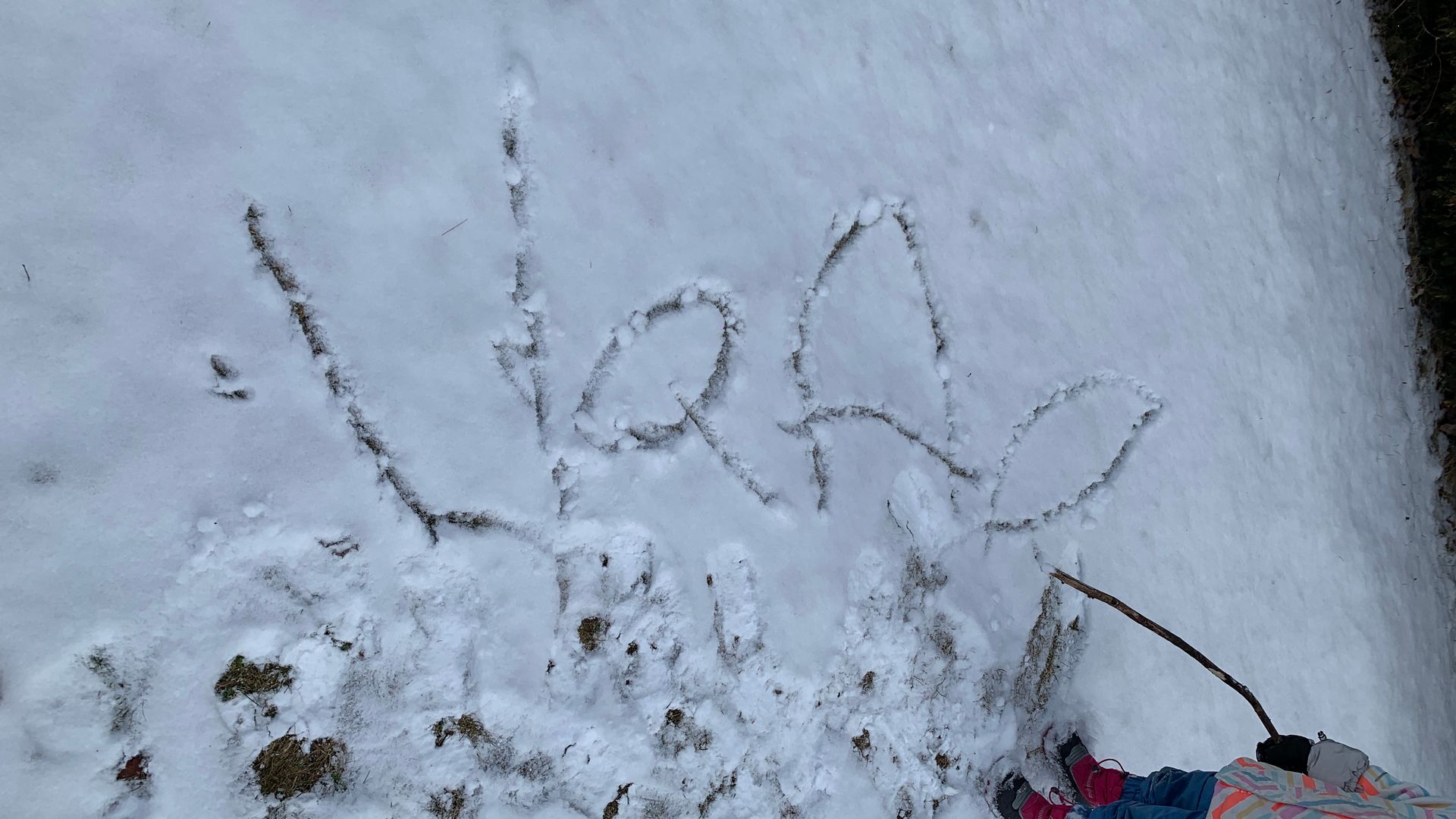1️⃣ Écrire dans la neige avec un bâton